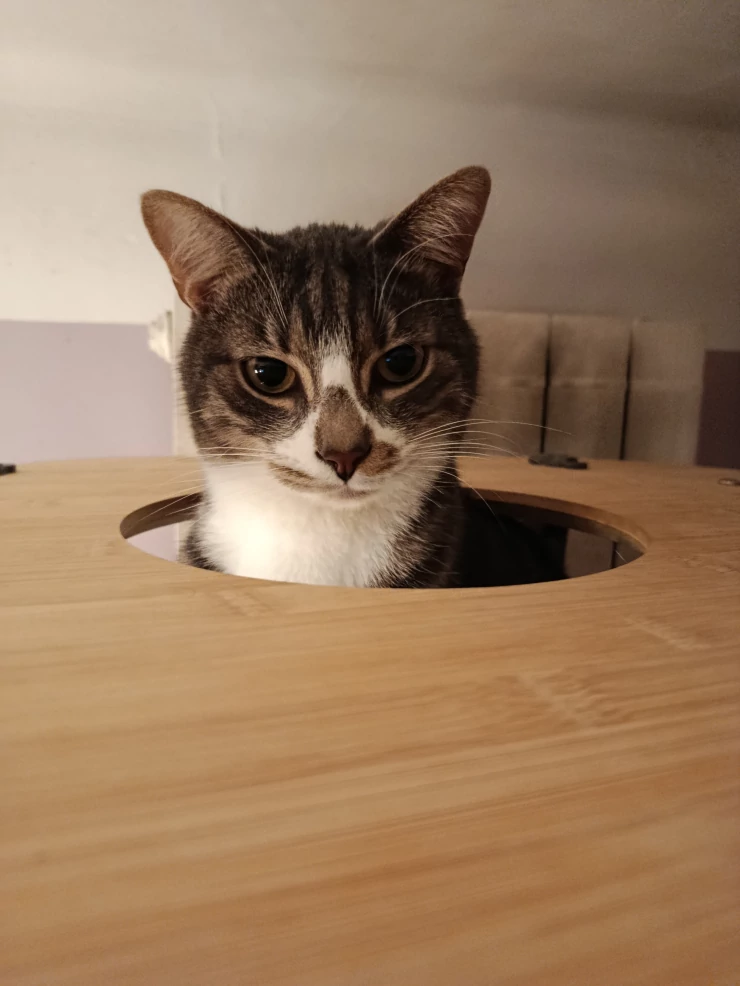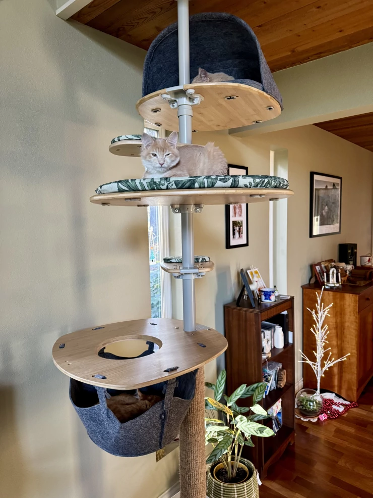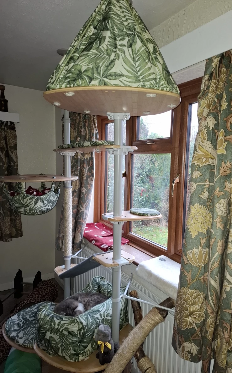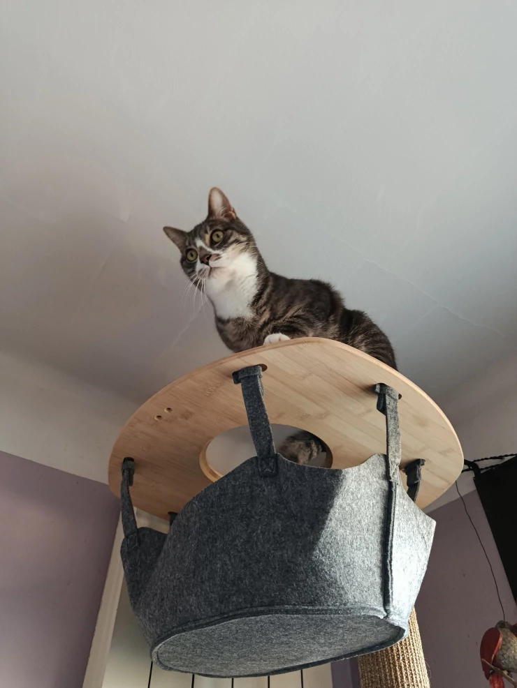 Légende : Apres notre poulailler OMLET, on est toujours convaincu par ces produits. Mes chats adorent cet arbre à chat d’intérieur, prochain projet le Catio !