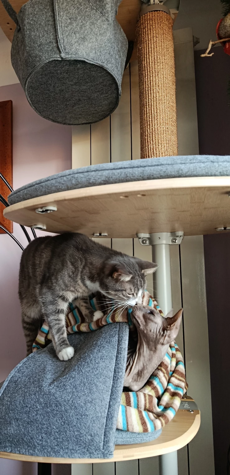 Légende : 3 chatons d'accueil dans notre arbre à chat Omlet