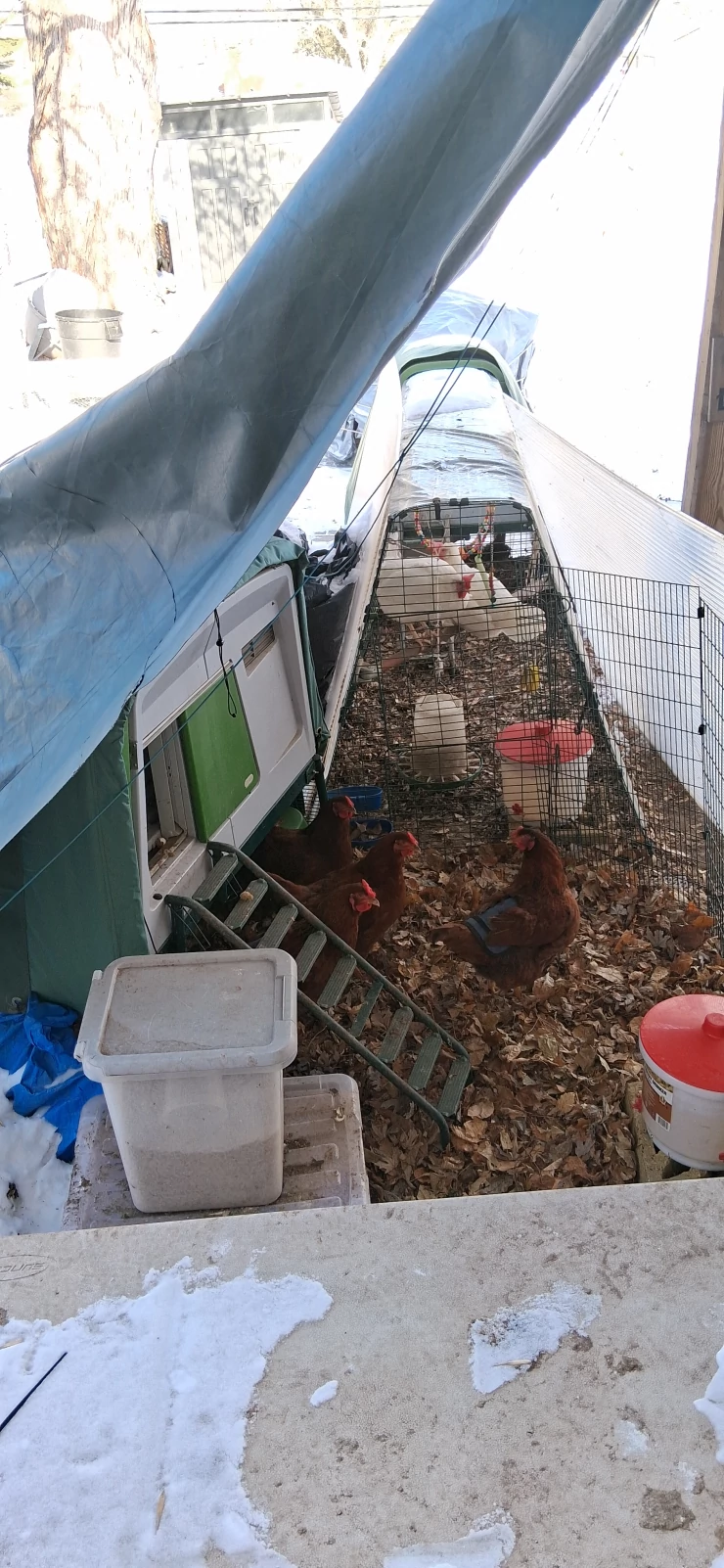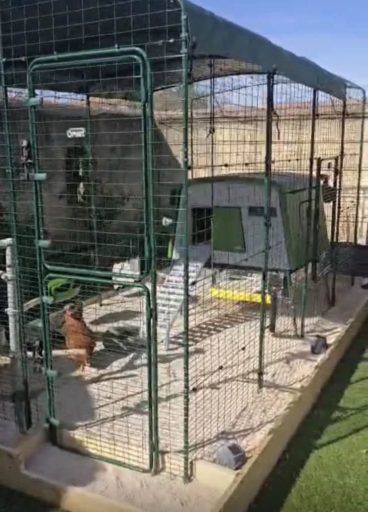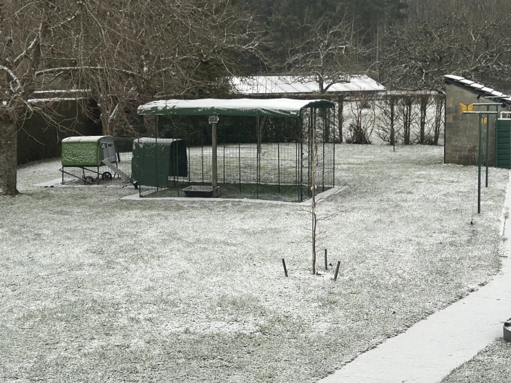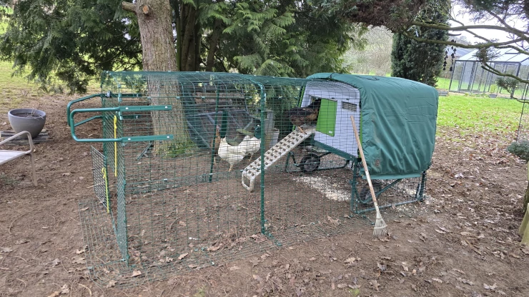 Légende : Notre installation Omlet...Eglu Cube, walk in run et une extension Eglu Go qui peut être utilisée comme zone d'isolement.