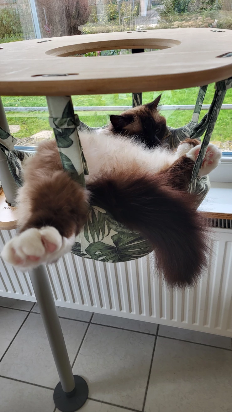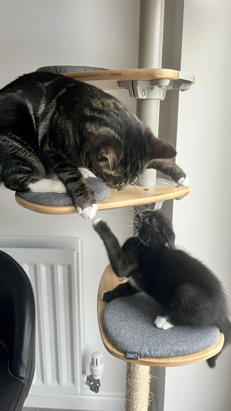 Légende : Quand la grande sœur n'a pas envie de partager "son" arbre à chat !