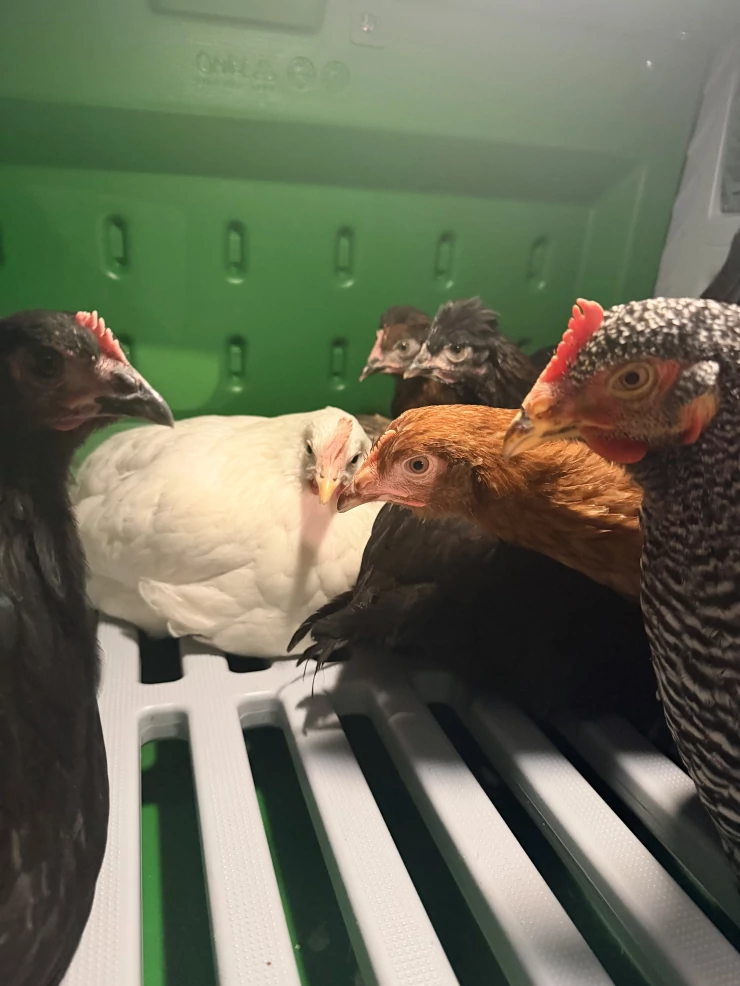 Légende : Églu, abreuvoir, mangeoire connectée, nos poules sont à la fête