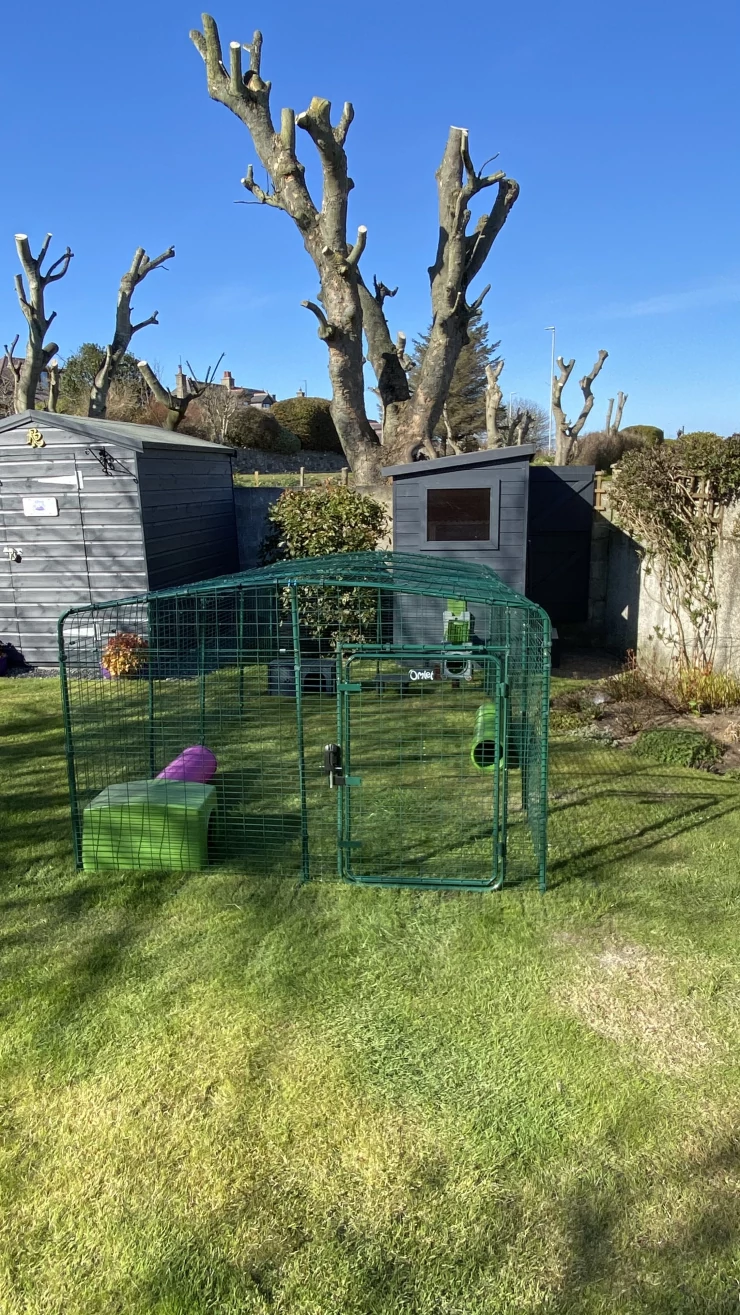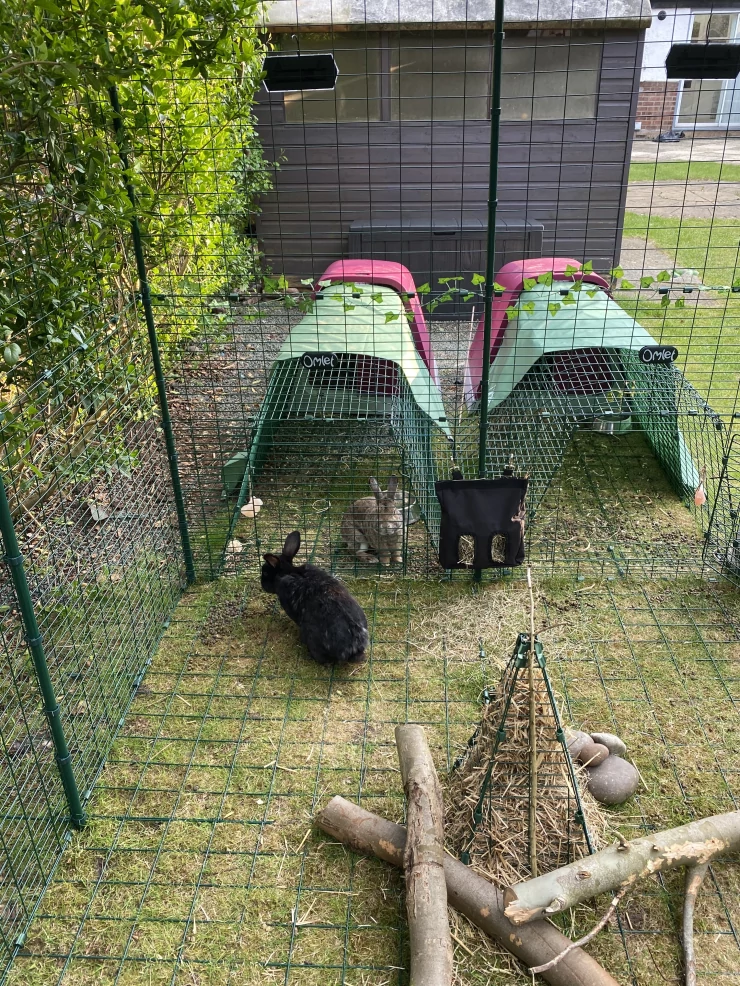 Légende : Omlet Zippi parcours pour lapins avec Zippi abri et tunnel dans le jardin