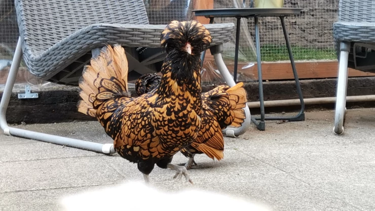 Légende : Les poulets polonais sont des oiseaux formidables, Omlet en possède un appelé frodo !