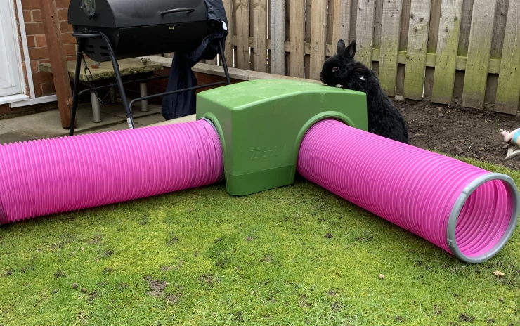 Légende : Omlet violet Eglu Cube grand poulailler et parcours pour poules
