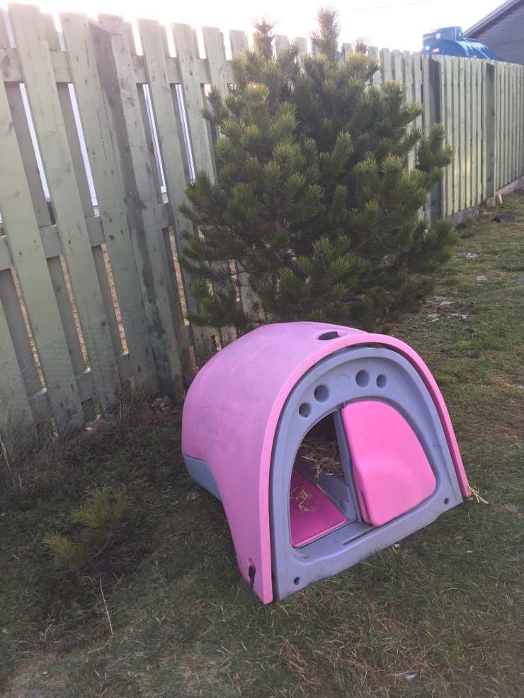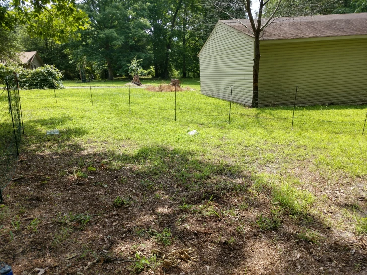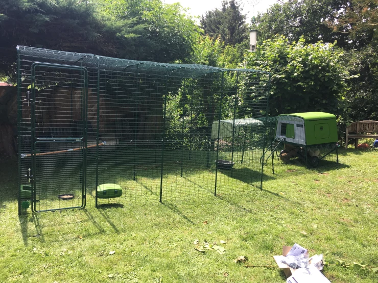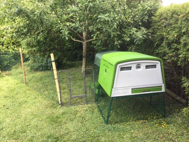 Légende : Le poulailler et l'enclos sont en place. il ne manque plus que les poules