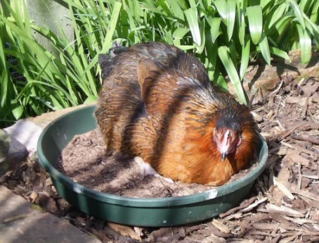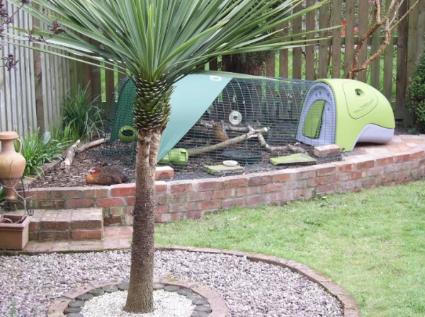 Légende : Eglu avec bordure en brique (donc ils ne peuvent pas sortir et rien ne peut entrer!) Et bain de poussière intégré - oui, c'était mon patio!