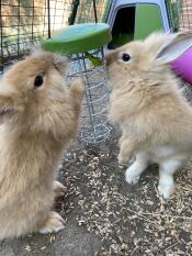 Un lapin se nourrissant d'un porte-Gourmandises Caddi dans un parcours Eglu Go .
